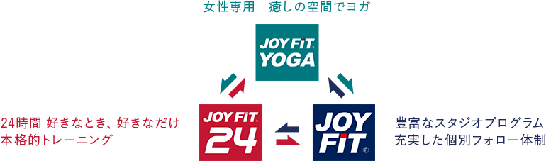 ※JOYFITおよびJOYFIT24の女性の会員様は、別料金で女性専用ヨガ・スタジオJOYFIT YOGAをご利用できます。