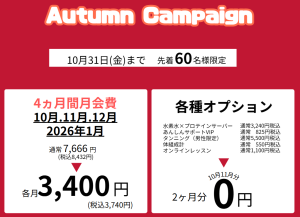 • 2025.10.01 Autumn Campaign  10月31日まで!!