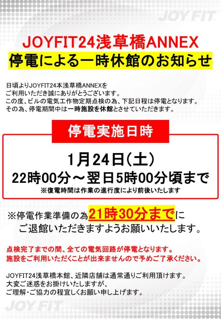 日頃よりJOYFIT24本浅草橋ANNEXをご利用いただき誠にありがとうございます。