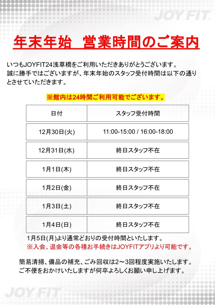 年末年始営業時間のご案内