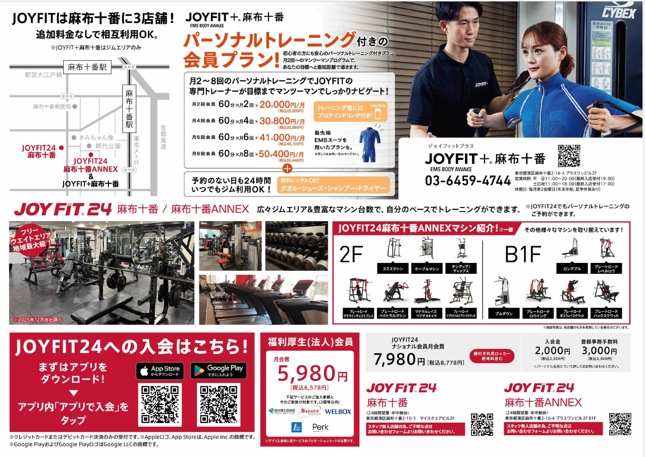 〒106-0045 東京都港区麻布十番2-10-3 マイスクエアビル2F 【JOYFIT24麻布十番アネックス】 ※ JOYFIT24麻布十番より徒歩1分! 〒106-0045 東京都港区麻布十番2-16-4 プラスワンビル地下1階 最寄り駅:東京メトロ南北線・都営大江戸線麻布十番 4番出口徒歩3分 JOYFIT24麻布十番