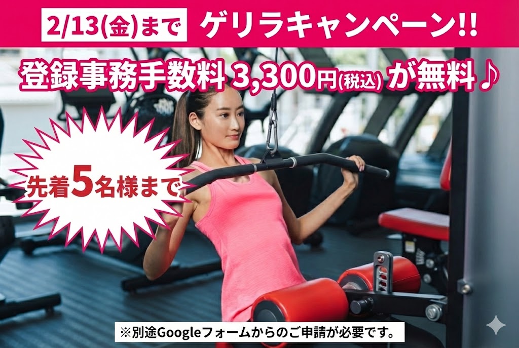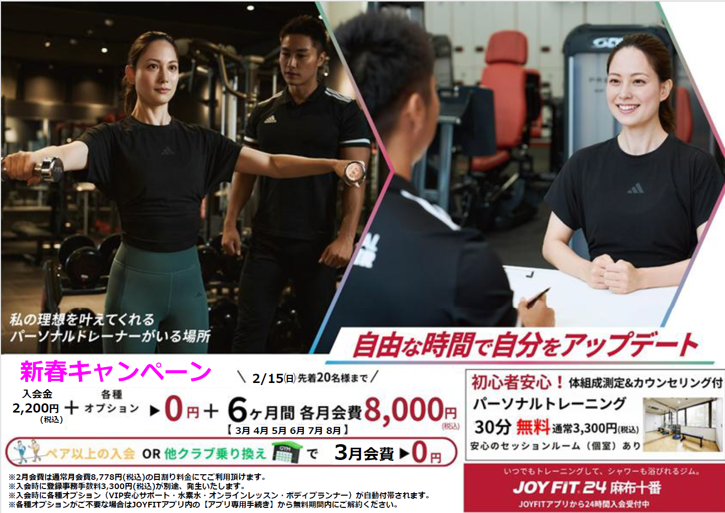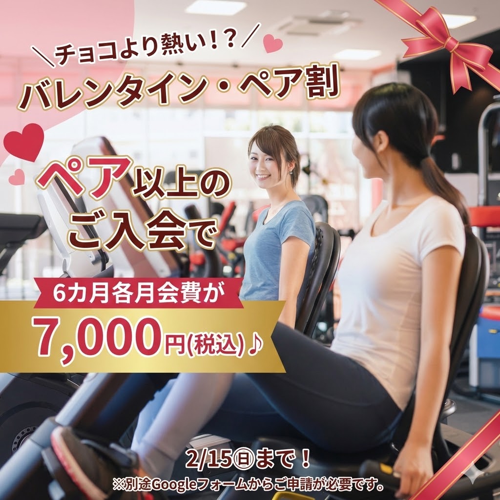 2/15㈰までにペア以上でご入会頂くと、現在行っている6カ月間(3月~8月)各月8,000円(税込)の所を6カ月間各月7,000円(税込)でご利用頂けます♪