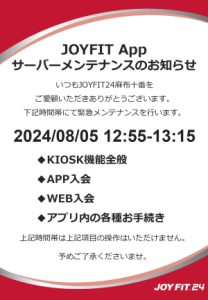 【重要】JOYFIT24麻布十番 一部運営変更のお知らせ
