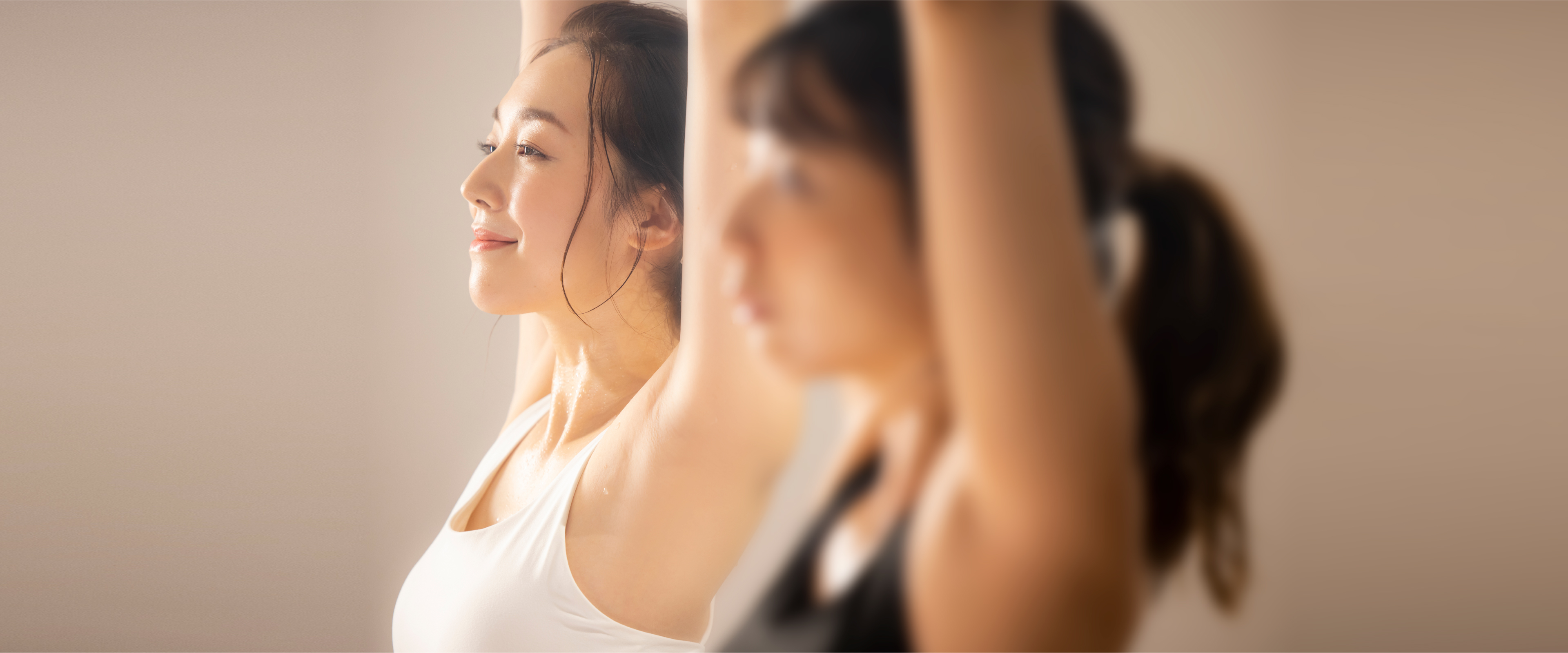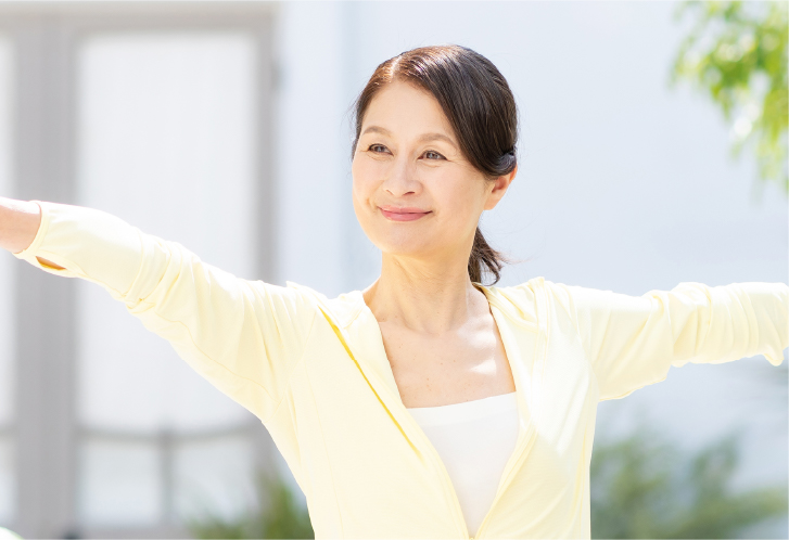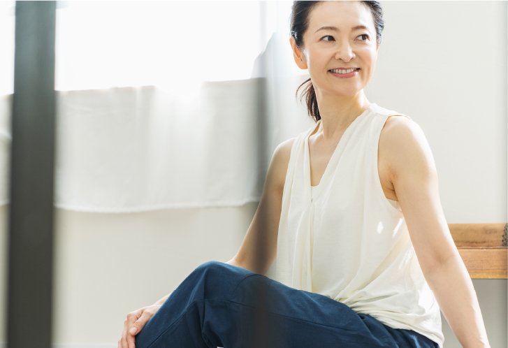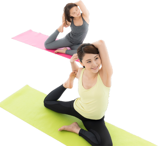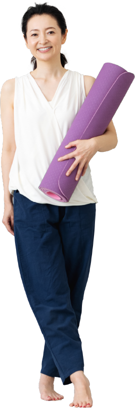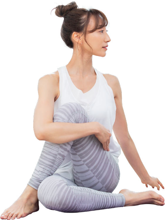 身体中の循環機能を高めてスッキリとした後は、ヨガの動きで血液のめぐりを良くし、アンチエイジングを目的としていきます。