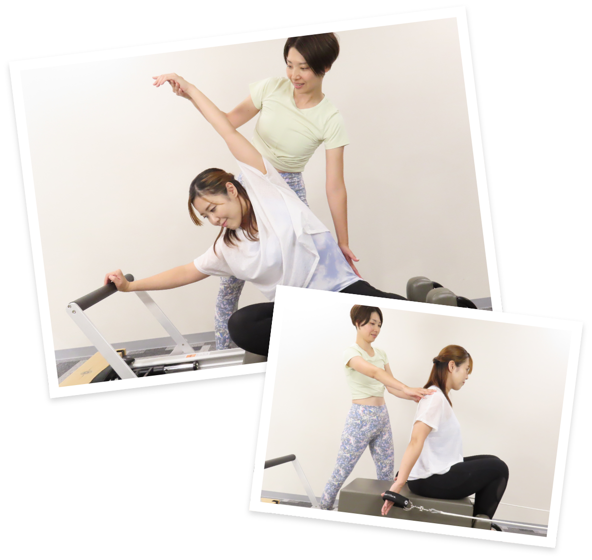 ピラティスの動きを「リフォーマー」というマシンを使用して行う、マンツーマンのレッスンです。