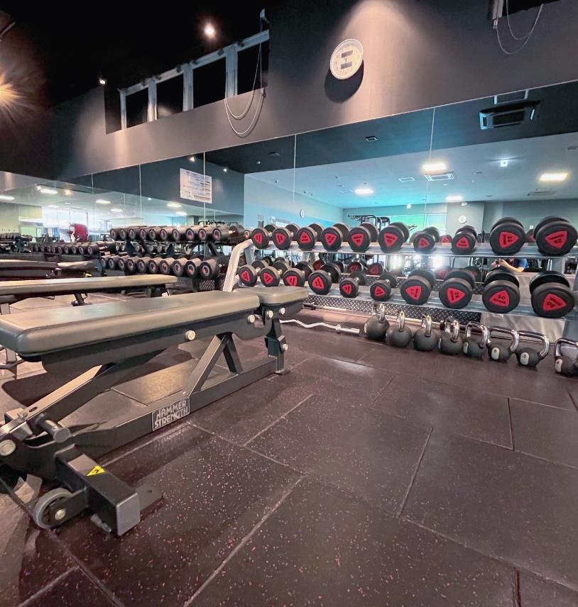 バレーコート1面分程ある地域最大級のエリアにダンベル・スミスマシン・パワーラック・ハンマーストレングス・ベンチプレスなど、充実のマシンをご用意。広々スペースで日々のトレーニングを飽きることなく、楽しむことができます。