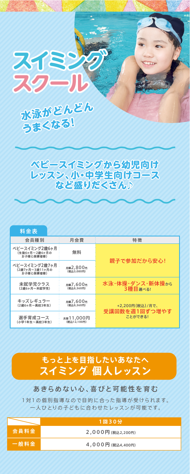 スイミングの料金は