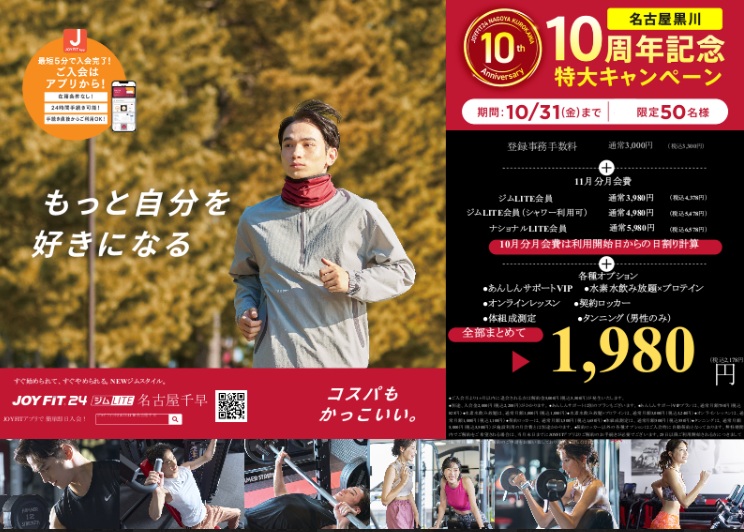 2025.10.01 【JOYFIT24ジムLITE名古屋黒川10周年記念!名古屋エリア全店で期間限定キャンペーン実施中!】