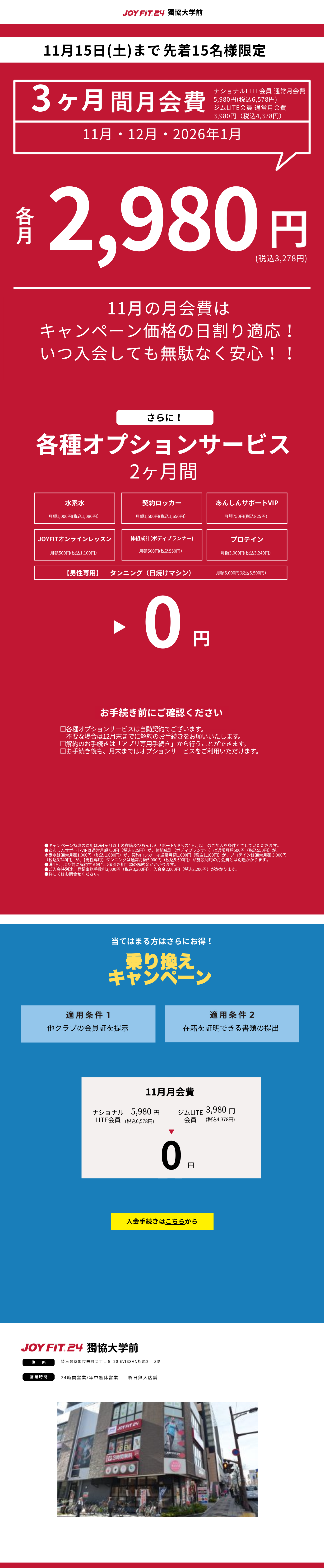 JOYFIT24ジムLITE獨協大学前のみご利用いただける最安の会員種別!