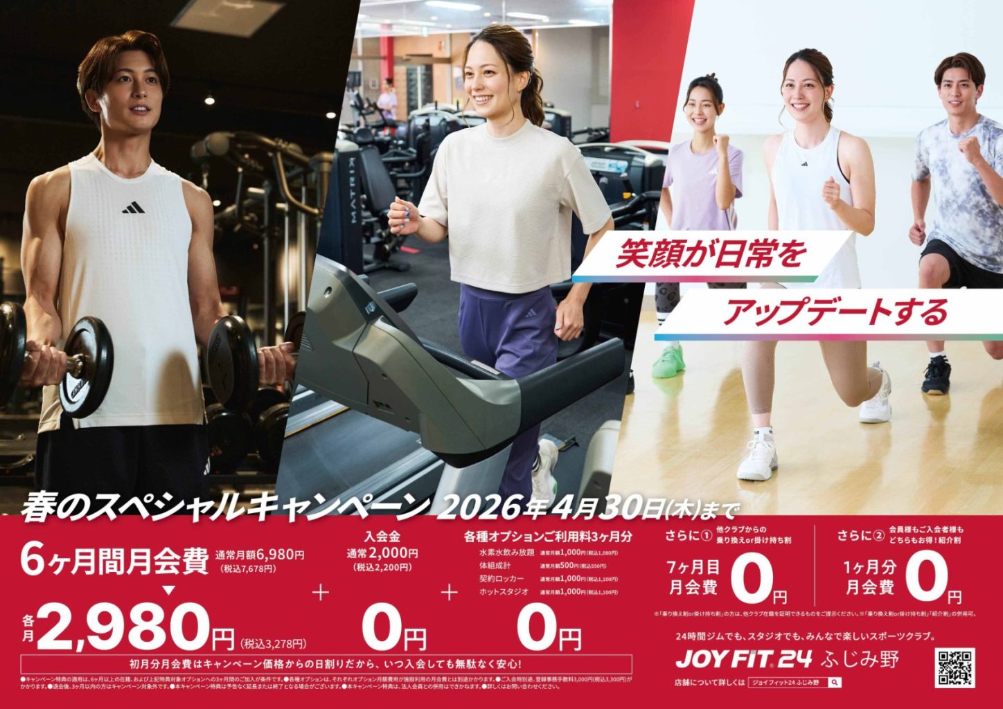 ※オプションは水素水、HOTスタジオ、体組成計(インボディ)の3種に加入が必須で3ヶ月以上の継続となります。(3月スタートの場合は2026年4月から2026年6月末まで)