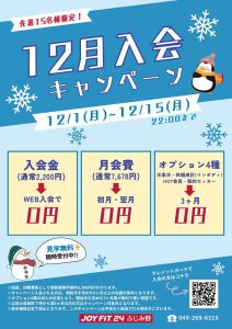☃12/1~12/15☃12月入会キャンペーンのご案内!☃