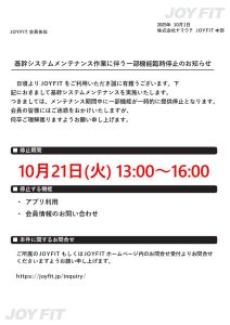 システムメンテナンスのお知らせ 【実施日時 10月21日(火) 13:00~16:00】