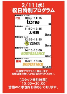 〇代行〇 10:30-11:30 ヨガベーシック 担当:MIKA ↓ 10:30-11:15 LESMILLS tone 担当:師
