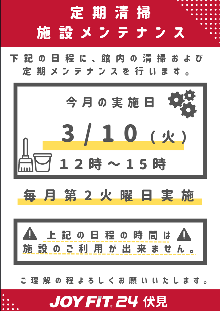 3月施設メンテナンスデーのご案内