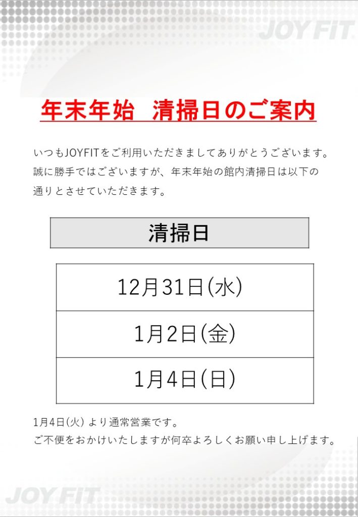 年末年始の清掃日のお知らせ