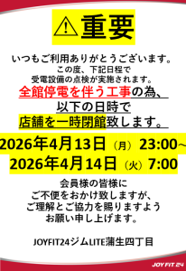 | 電話 | ※無人店舗の為、お問い合わせはホームページ内の店舗へのお問い合わせ、またはJOYFITアプリより受付けております。※他店舗へお問い合わせいただいても対応できかねます。 |