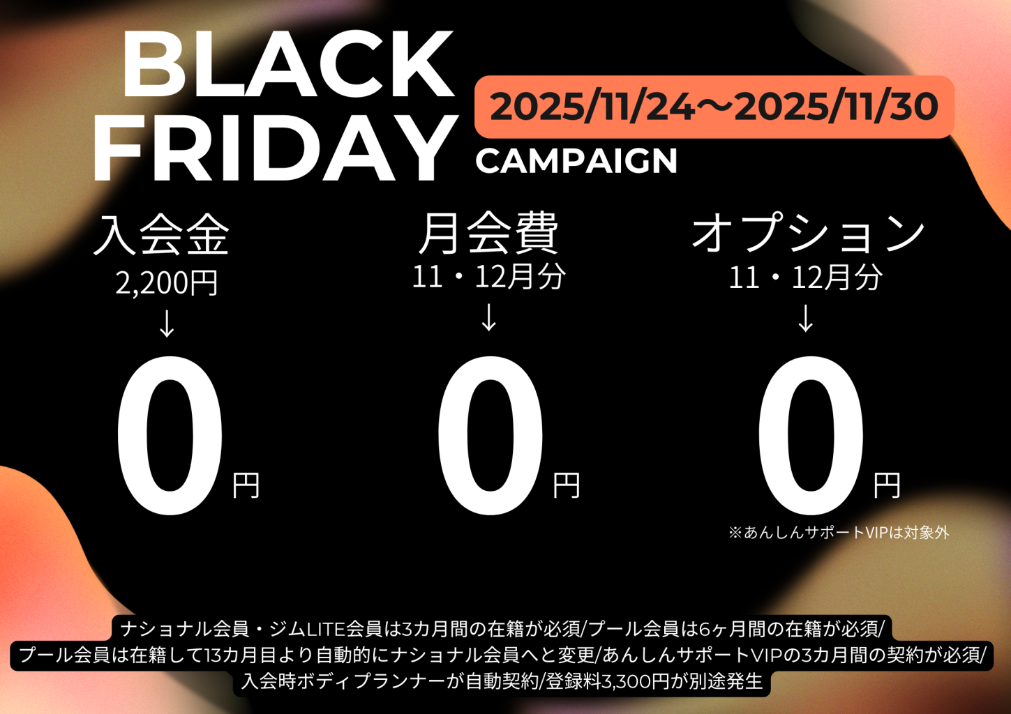 ※ナショナル会員、ジムLITE会員は3カ月間の在籍が必要