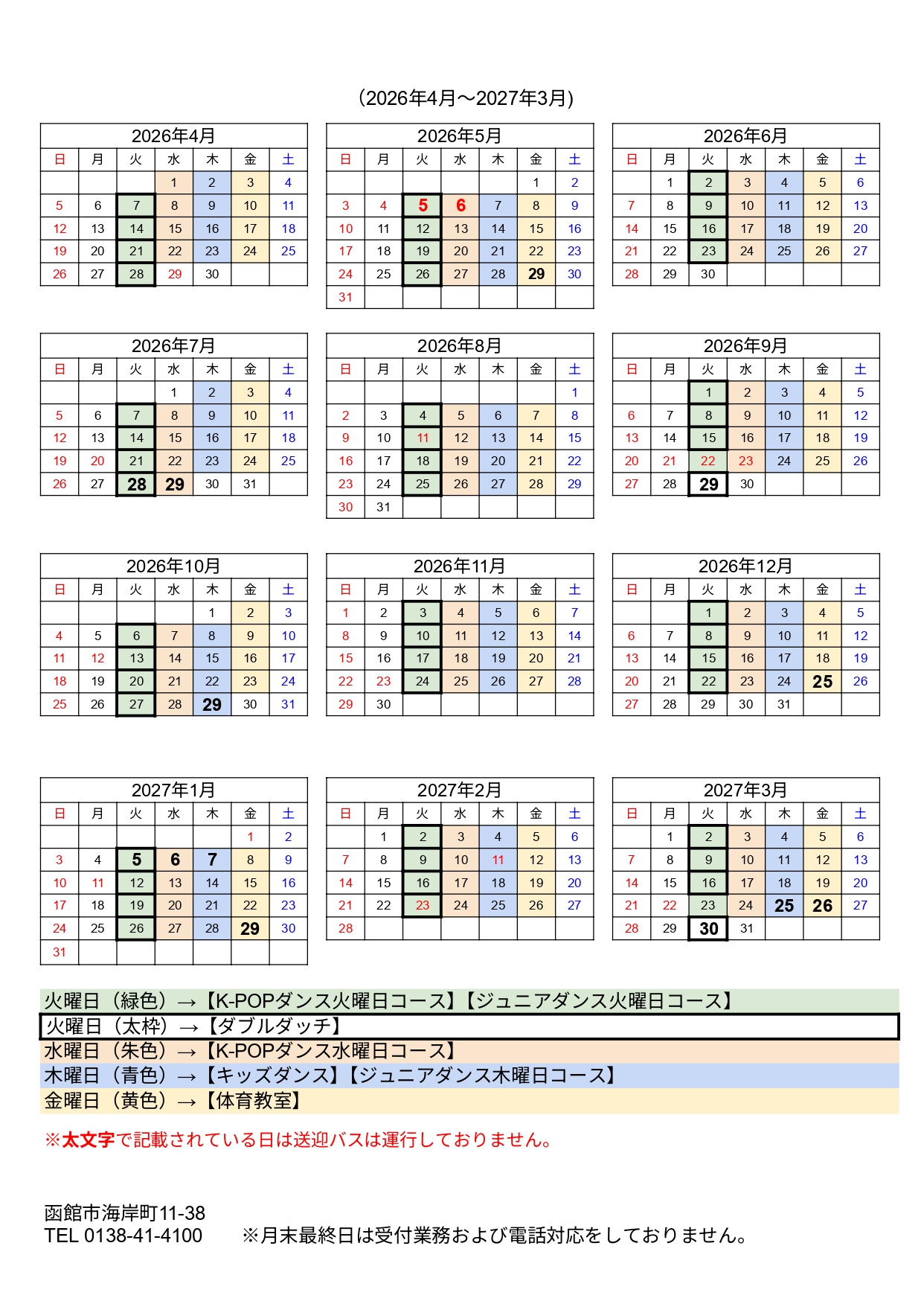 ※スクールバスはジュニアスイミング実施日のみ運行しております。