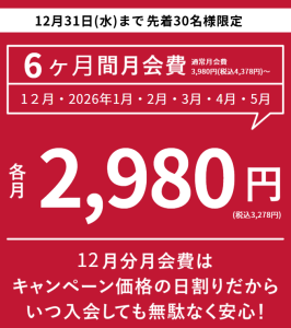 2025.11.30 12月新規入会キャンペーン※残り30名