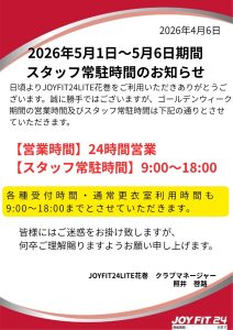 GW期間(5月1日~5月6日まで)のスタッフ常駐時間