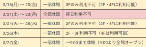 2026.03.13 【重要】リフレッシュ工事に伴う休館日程変更および確定のお知らせ