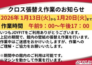 男女更衣室・フリーウエイト天井の工事完了のお知らせ
