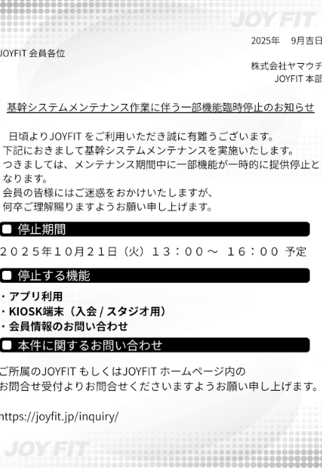 ⚙基幹システムメンテナンス実施のお知らせ⚙