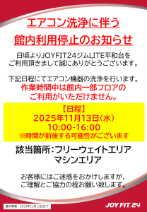 | その他 | ■24時間営業のスポーツクラブです。 ■クラブスタッフは常駐しておりません。 ■貴重品につきましてはご自身で管理をお願いします。 ■シャンプー・リンス・ボディーソープ・タオルの貸し出しはございませんので、 各自でご用意をお願いいたします。 ※ドライヤーは貸し出しておりますので、ご自由にお使いください。 |