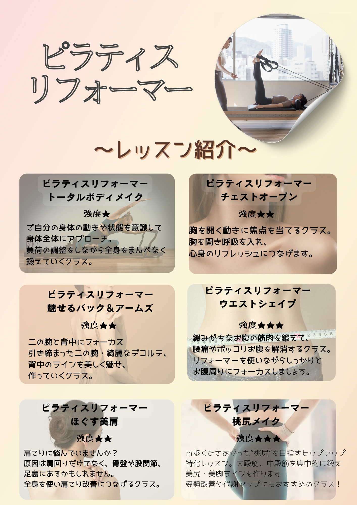 ピラティスリフォーマー割引体験実施期間中は割引価格でご体験いただけます。