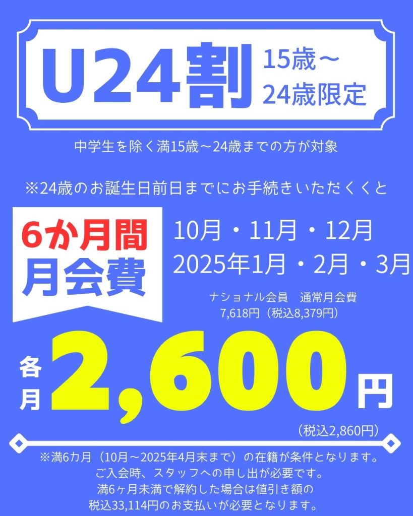 U-24割も実施しています!! 詳しくは店舗までお問い合わせください。