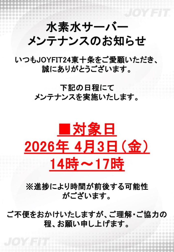 水素水サーバーメンテナンスのお知らせ