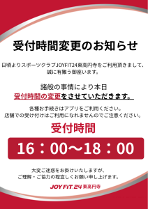 【受付時間変更のお知らせ】