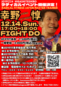 12/4(日) RADICAL FITNESS JAPAN MASTER TRAINER 幸野 惇 参戦!