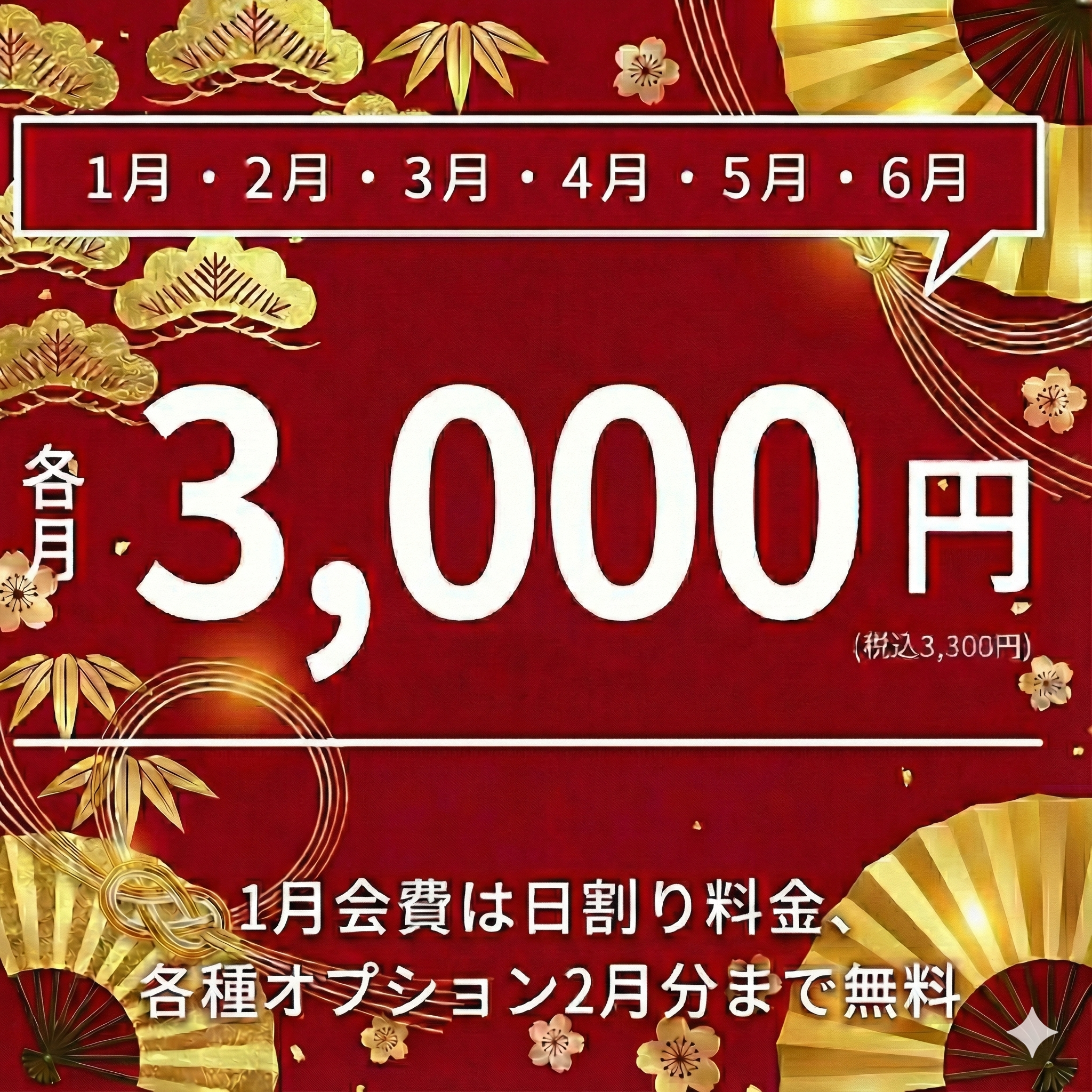 1月はキャンペーン価格の日割り計算でご利用いただけます!