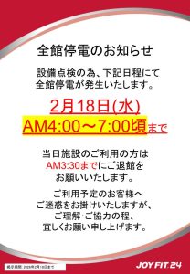 | その他 | ■24時間営業のスポーツクラブです。 ■クラブスタッフ常駐時間は 平日 12:00~15:00 / 16:00~21:00 *毎週火曜・金曜日は終日スタッフ不在日です。 土日祝日 12:00~15:00 / 16:00~19:00 常駐時間に関しましてはマシンの説明等はご案内させて頂きます。 ■貴重品につきましてはご自身で管理をお願いします。 ■シャンプー・リンス・ボディーソープ・タオルの貸し出しはございませんので、 各自でご用意をお願いいたします。 ※ドライヤーは貸し出しておりますので、ご自由にお使いください。 |