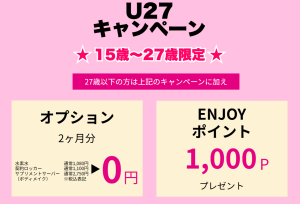 ※アプリから通常キャンペーンでご入会後、入会月中にスタッフ受付時間内に本人確認させていただき次第U-27キャンペーンの価格に変更させていただいております。