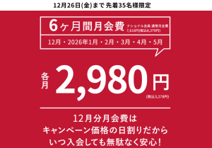 中学生を除く15歳~27歳限定!!! ※28歳の誕生日前日までにお手続きいただくこと 通常会費8,379円(税込)のところ6か月間の月会費がなんと2,860円(税込)でご利用いただけます!!! ※アプリから通常キャンペーンでご入会後、入会月中にスタッフ受付時間内に本人確認させていただき次第U-27キャンペーンの価格に変更させていただいております。