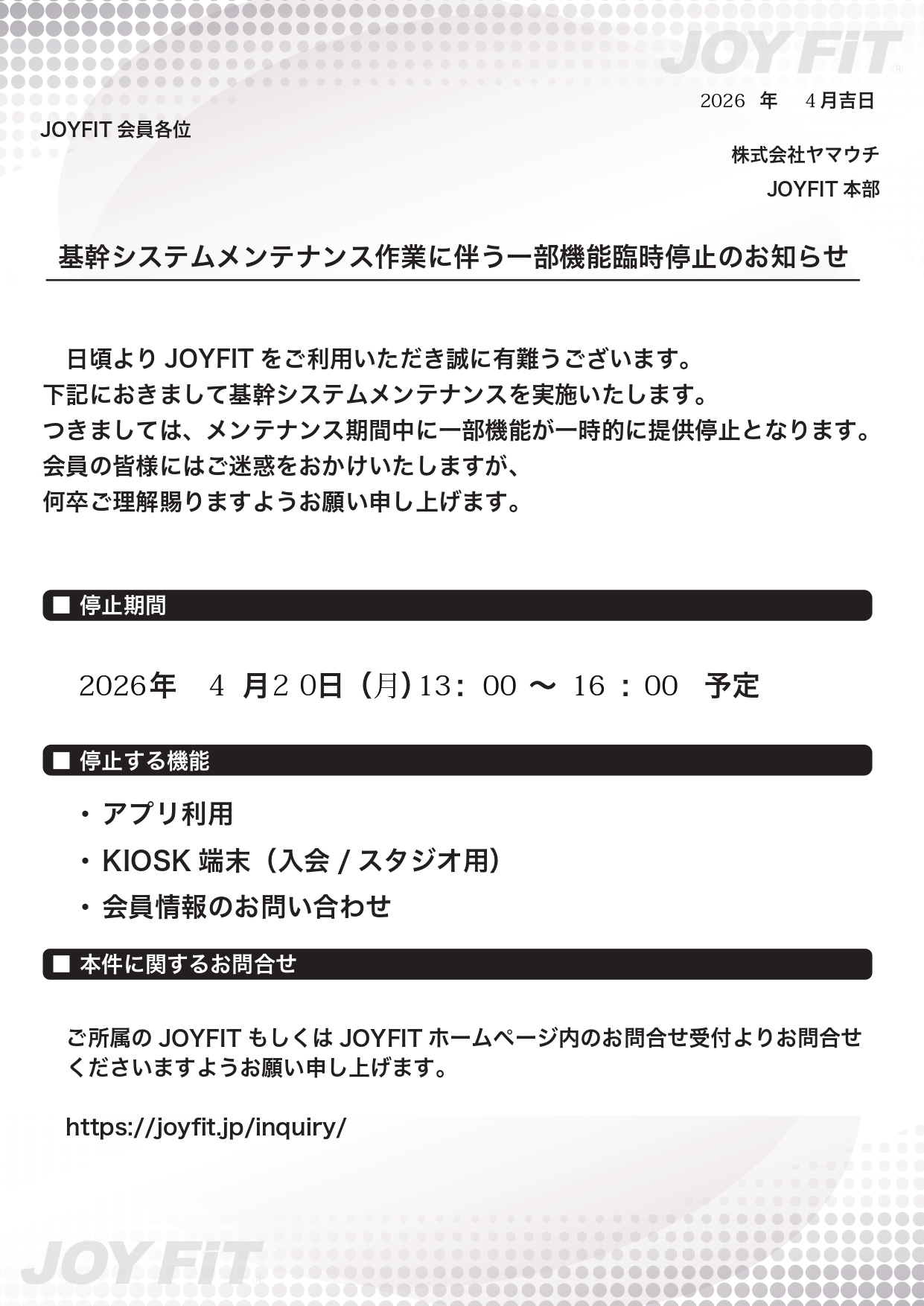• 2026.03.30 4月システムメンテナンスのお知らせ