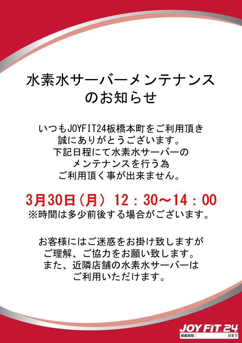 水素水サーバーメンテナンスのお知らせ