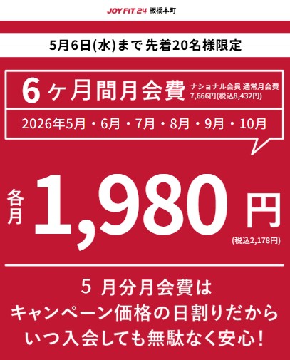 ・キャンペーン適用は満6か月間の在籍とJOYFITあんしんサポートVIPのご契約が3ヶ月継続が条件でございます。