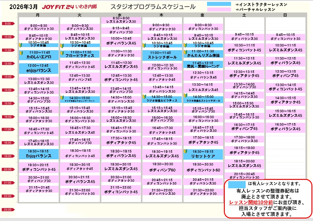 【平日】10:00〜21:00 【土曜】11:00〜20:00 【日曜・祝日】11:00~17:00 【ノースタッフデー】毎週水曜日 ※ノースタッフデーはジムエリア、VRレッスン、24時間更衣室がご利用いただけます。 |
