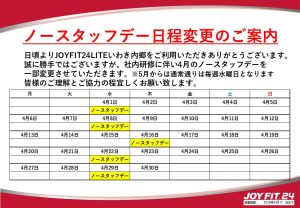 • 2026.04.05 ノースタッフデイ変更のお知らせ