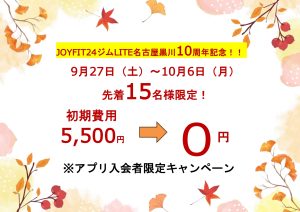 【JOYFIT24ジムLITE名古屋黒川10周年記念!名古屋エリア全店の期間限定キャンペーン実施中!】