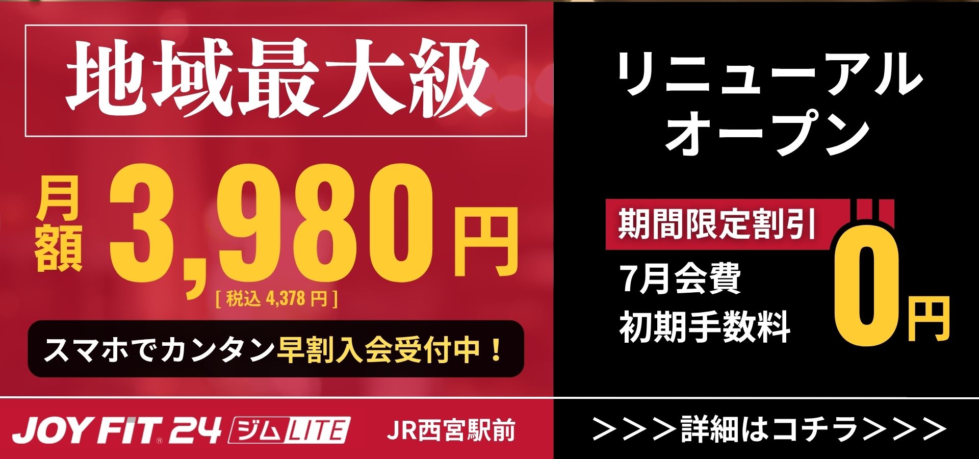 〒662-0911 兵庫県西宮市池田町9-7 フレンテ西館3階 JOYFIT24 ジムLITE JR西宮駅前