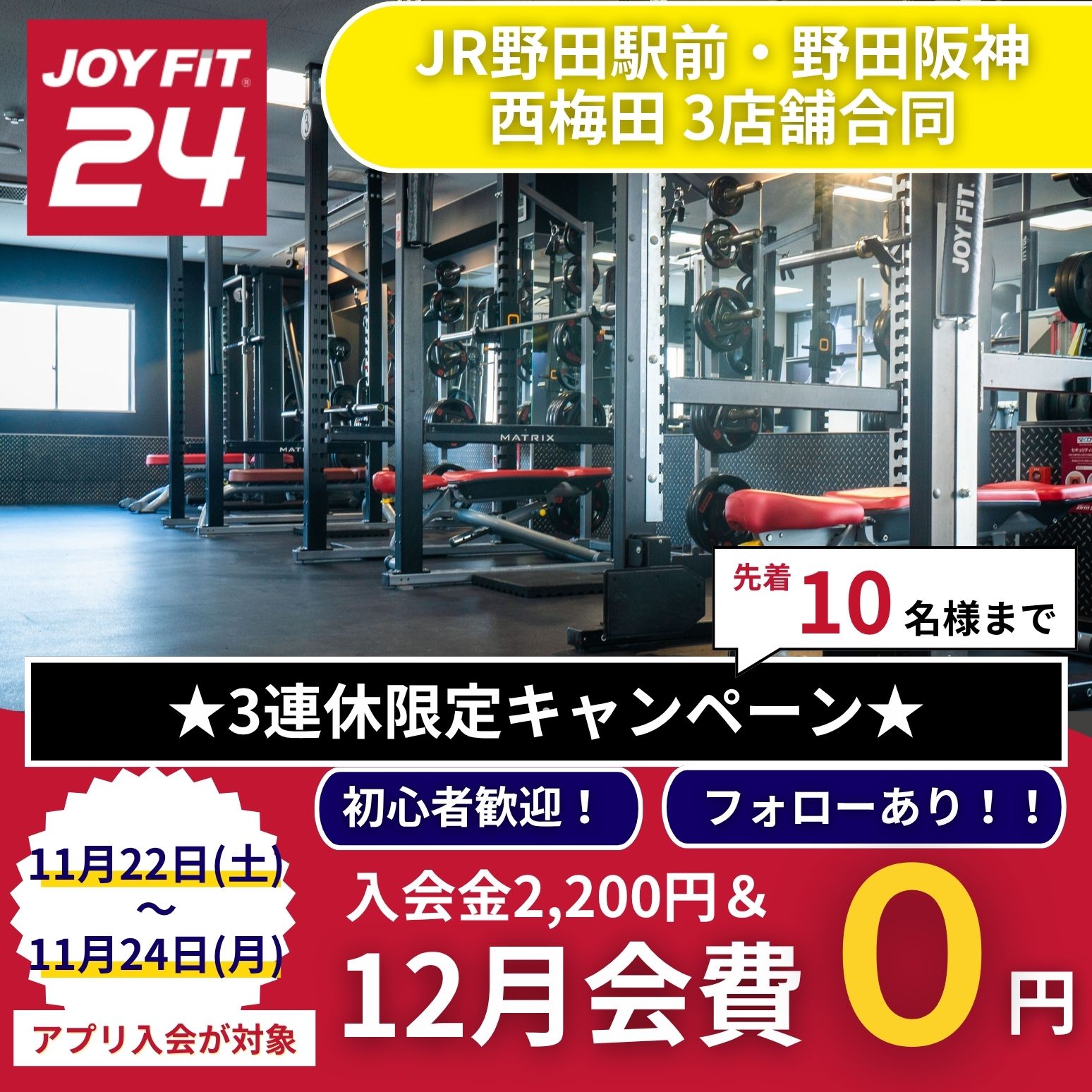 11月22日(土)23日(日)24日(月)の期間にJOYFITアプリより