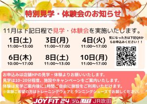 | 営業時間 | ■館内24時間営業!! <入会受付時間> JOYFITアプリから24時間入会可能です。 ※クレジット決済のみ ■毎週月曜・火曜・木曜日 10:00、12:00、14:00、16:00開始で見学・体験会開催中!! ※ 火曜日は12:00開始となります ■スタッフ不在の完全無人店舗でございます。 |