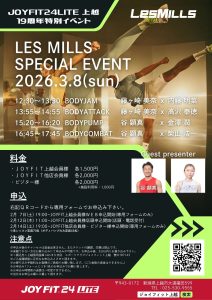 JOYFIT24LITE上越オープン19周年を記念いたしまして、3月8日(日)に『LES MILLS SPECIAL EVENT』を開催いたします♪