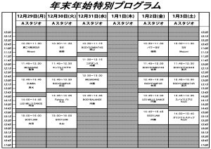 年末年始のスタジオレッスンは特別プログラムに変更させて頂きます。