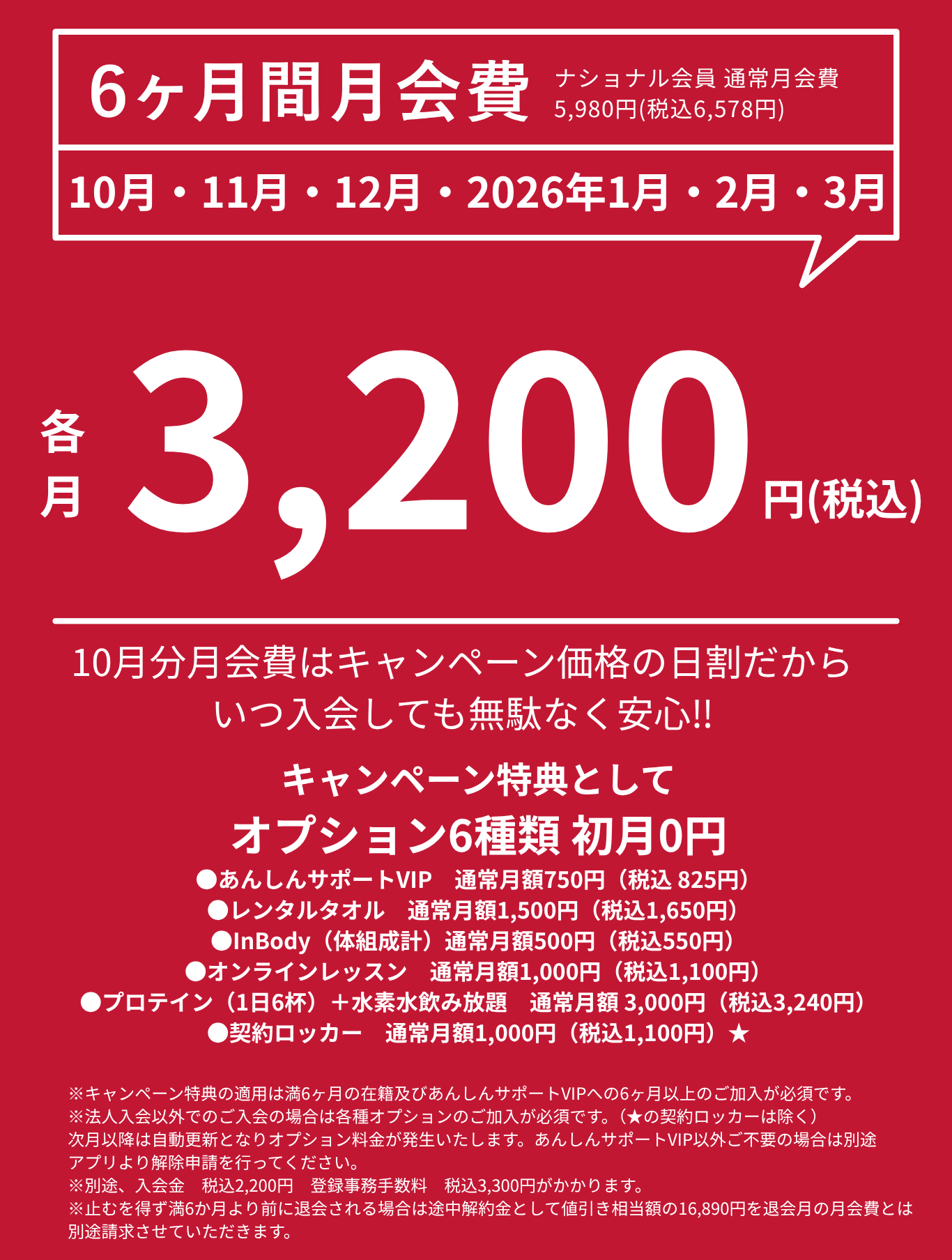 平日:11:00~15:00・16:00~20:00 土祝:11:00~15:00・16:00~18:00 ※毎週金曜日、日曜日は終日スタッフ不在です。 [2025年4月1日からのスタッフ受付時間] スタッフ不在日を追加し下記時間での受付と変更させて頂きます。 平日:11:00~15:00・16:00~20:00 土・祝:11:00~15:00・16:00~18:00 ※毎週金・日曜日は終日スタッフ不在です。 ※ご入会はJOYFITアプリからとなっています。HP内の「入会のお手続きをする」からお進みください。 |