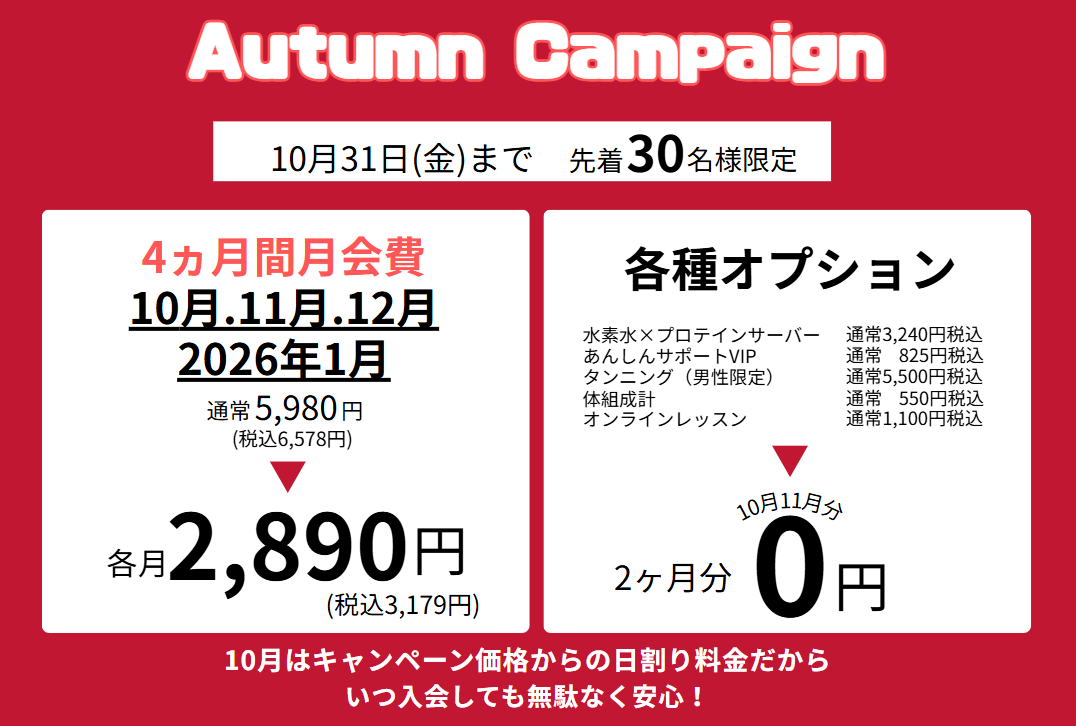 ●各種オプションはご利用の有無に関わらず自動更新となっており、施設利用の月会費とは別途料金がかかります。